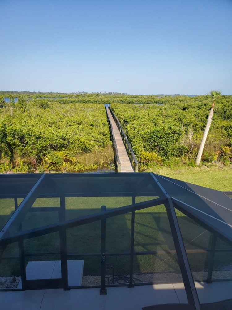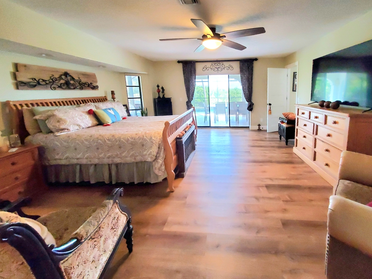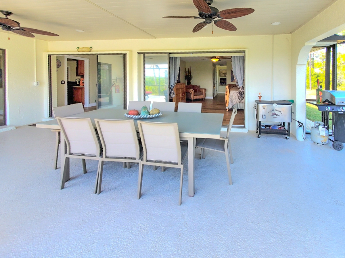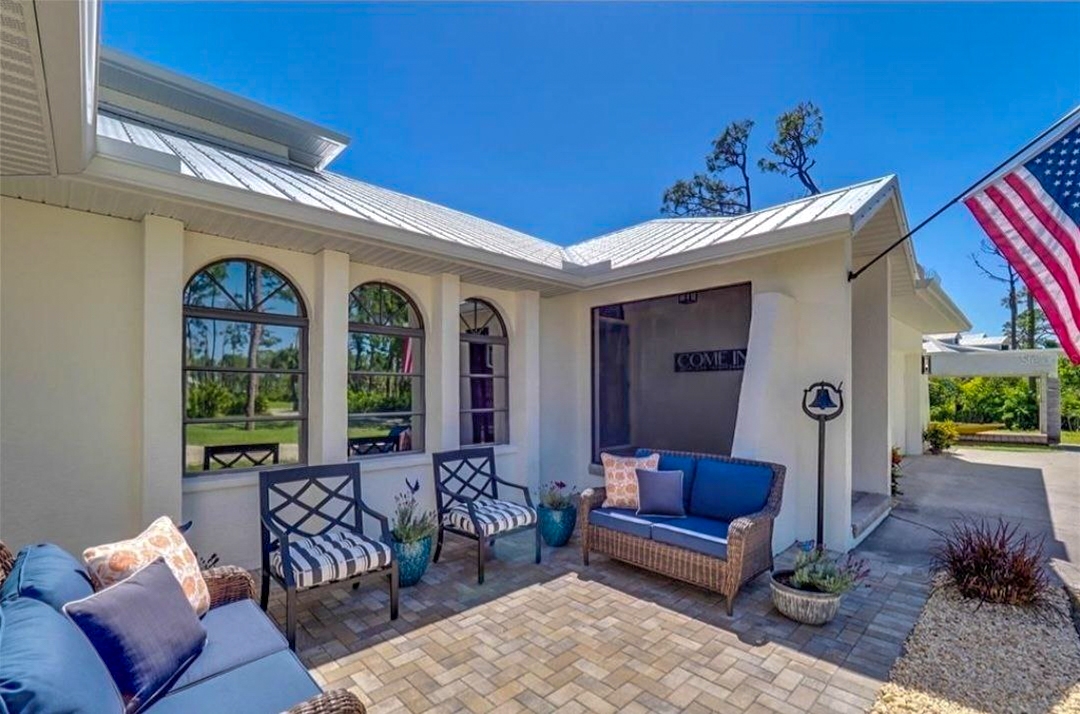 - DESCRIPTION -The sign, "Welcome to our Riverfront Home," greets you upon entrance into the beautiful foyer through the double entry doors, setting the tone for this 2.69-acre waterfront property.Key features and updates include: - A new metal roof installed in 2023. - A new septic tank (2025), three new well pumps (2025), and a well and water treatment system with a 500-gallon RO storage tank hidden inside a neat wood cabin structure. - The entire home has been painted with non-toxic paint from Sherwin Williams, and new fans have been installed in every room. - New luxury vinyl plank flooring throughout the entire home. - The entire upstairs window wrap is impact glass, as are several windows on the main floor. - New five-panel solid core doors, new trims, and ample storage throughout. The home is a four-bedroom residence with five sets of sliders along the back opening to the pool/spa patio area, overlooking the mangroves. There is 300 feet of dock access through the mangroves. The large pool/spa patio area includes a brand-new enclosure, a solar outdoor shower, and a new tongue-and-groove lanai ceiling with fans. The heated salt water pool and spa feature a waterfall for added ambiance. The kitchen has been completely remodeled with new cabinets, granite counters, a tumbled stone backsplash, a Sub-Zero refrigerator, a copper sink, and a wine cooler. The primary en-suite bedroom is located on the main floor and offers three walk-in closets, a soaking tub niche with a TV, and a separate shower with a frosted glass enclosure. All main floor bedrooms have large walk-in closets. The charming staircase leads to the fourth bedroom upstairs, which features its own newly screened patio space with panoramic views and an en-suite shower bathroom. This is an equestrian community with beautiful homes on large acre-plus lots. There are no mandatory HOA or CDD fees. The road is privately owned by the community, with a voluntary association for shared road paving responsibility. This country living is less than 20 min. from Englewood Beach and 10 minutes from Costco and dining, shopping, and live entertainment in the new Downtown Wellen Park. The Englewood Sport Complex, which features 18 pickleball courts, is also only 10 minutes away. Please let me know if you have any questions or would like to schedule a viewing.